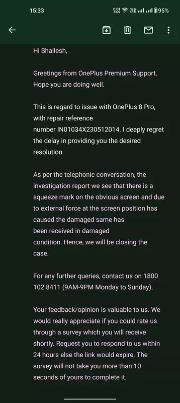 Der Besitzer des OnePlus 8 Pro wandte sich an das Support-Team des Unternehmens und erhielt die Auskunft, dass die Ursache für die Selbstentzündung "Druck auf die Hauptplatine" sei. Er ist jedoch der Meinung, dass dieser Befund nicht fundiert ist und besteht auf einer gründlicheren Untersuchung.