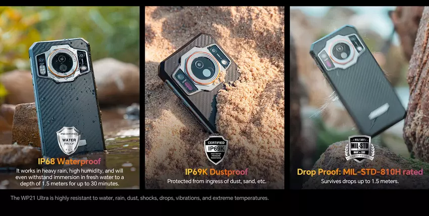 Das OUKITEL WP21 Ultra ist in ein Gehäuse gehüllt, das die Schutznormen IP68, IP69K und MIL-STD-810H erfüllt. Die Neuheit verfügt außerdem über NFC, ein 6,78" FHD+ 120Hz Display und einen seitlich angebrachten Fingerabdruckscanner.