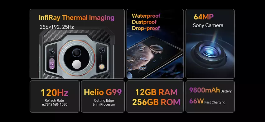 Das neue Produkt ist eine verbesserte Version des OUKITEL WP21 aus dem letzten Jahr. Eine der wichtigsten Neuerungen ist das Auftauchen der Wärmebildkamera. Sie ist mit einem Sensor mit einer Auflösung von 256 x 192 Punkten bei 25 Hz ausgestattet.