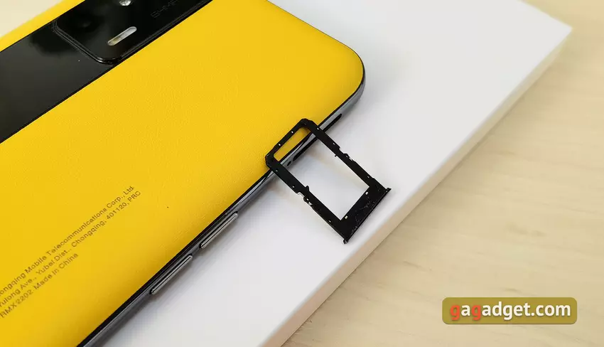 Das Unternehmen hat es geschafft, zu überraschen und der realme GT in Gelb sieht wirklich originell und interessant aus. Bei der Montage gibt es überhaupt keine Probleme: alles passt gut. Allerdings bräuchten Sie einen Metallrahmen, um glücklich zu sein.