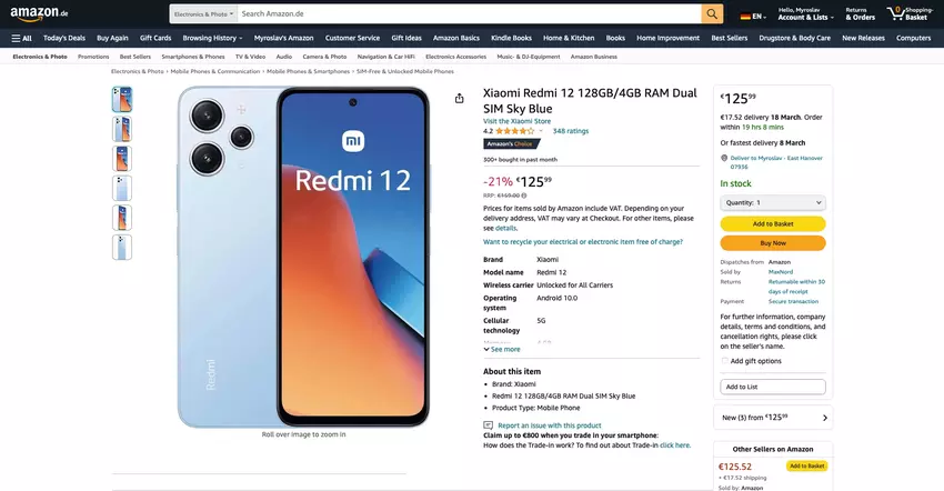 Redmi 12 bei Amazon: Smartphone mit 90Hz-Bildschirm, Helio G88-Chip und 50 MP-Kamera für 125 € (21% Rabatt)