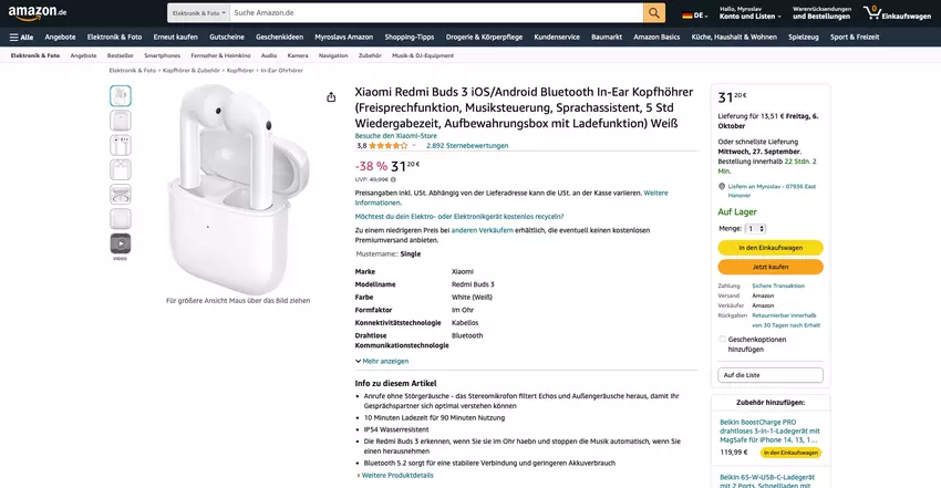 Mit den Redmi Buds 3 gibt es derzeit einige sehr günstige TWS-Kopfhörer, die bei Amazon mit einem Rabatt erhältlich sind.