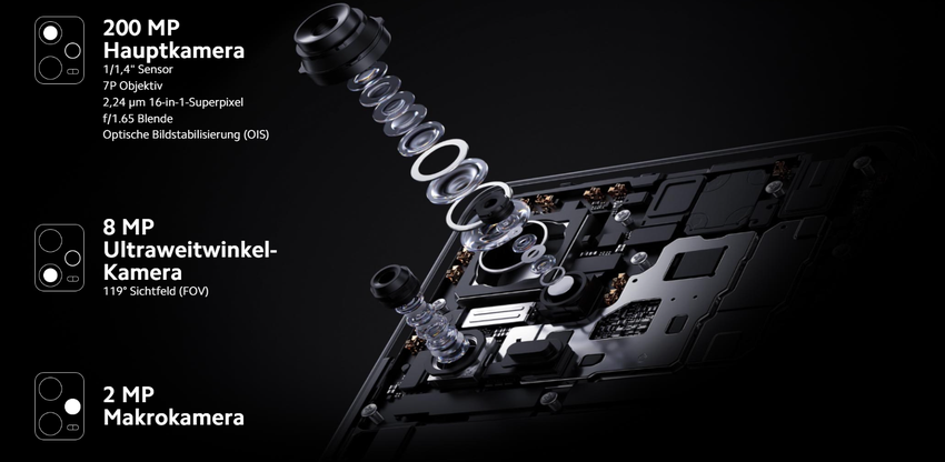 Das Redmi Note 12 Pro+ 5G hat zwei wesentliche Unterschiede zur Pro-Version. Erstens wurde der 50-MP-Sensor in der Hauptkamera durch einen neuen 200-MP-Sensor ersetzt. Das ist ein Rekord. Zweitens wurde die Schnellladeleistung von 67W auf 120W erhöht.