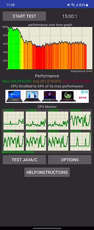 Eine der üblichen Schwierigkeiten bei der Entwicklung von Clamshells mit flexiblen Bildschirmen ist eine sehr dichte Anordnung im Inneren aufgrund des Formfaktors. Und dementsprechend schwierig ist die Kühlung. Auch das Samsung Galaxy Flip5 ist von diesem Problem nicht verschont geblieben. Bei längerer maximaler Belastung überhitzt der Prozessor und verliert an Leistung. Der Rückgang kann bis zu 50% betragen. Obwohl es im wirklichen Leben sehr schwierig sein wird, einen so leistungsstarken Prozessor zu überlasten.