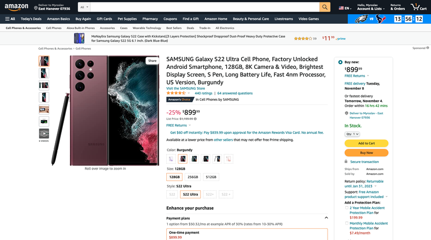 Samsung verkauft das Flaggschiff Galaxy S22 Ultra auf Amazon mit einem Preisnachlass von $300