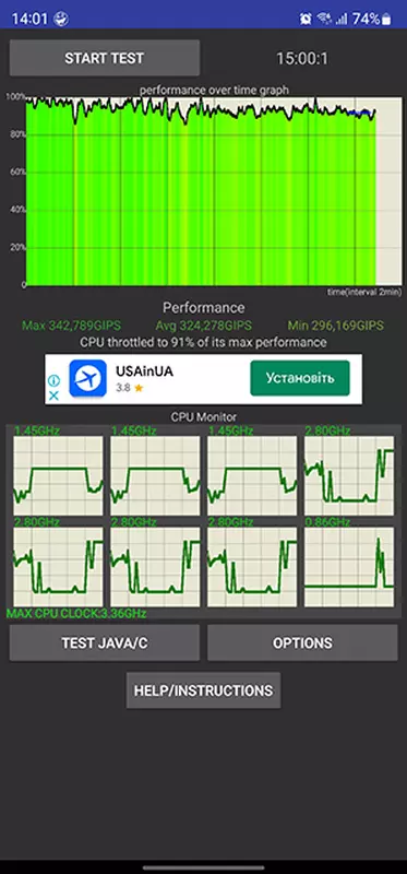 Die Leistung des Smartphones reicht noch für zwei bis drei Jahre. Die Schnittstelle, alle Anwendungen in beliebiger Menge, laden und arbeiten sehr schnell. Auch die modernen Spiele sind in bester Ordnung. Bei hohen und maximalen Einstellungen kann man stabile 60 FPS (und in manchen Fällen 120 FPS) erwarten. Die proprietären Spiele-Apps Game Launcher und Game Booster mit Zusatzmodulen und Plug-ins bleiben unverändert.