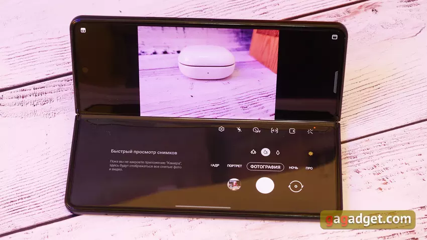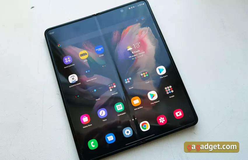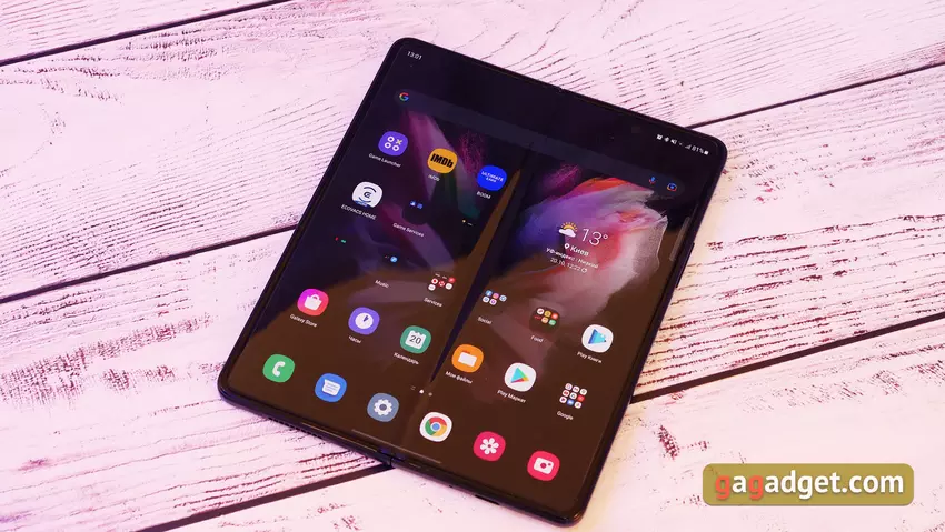 Der interne Bildschirm eignet sich dank seiner Größe hervorragend zum Surfen im Internet, für E-Mails, Dokumente und den Mehrfenstermodus. Gleichzeitig können dank der Optimierung einiger Anwendungen Inhalte durch einfaches Ziehen und Ablegen zwischen Fenstern übertragen werden. Aber wenn das Smartphone aufgeklappt ist, wird es groß und ist schwer mit einer Hand zu bedienen, und es ist nicht sicher. Vor allem in Bewegung. Andererseits ist es schwierig, sich Szenarien vorzustellen, in denen dies notwendig wäre.