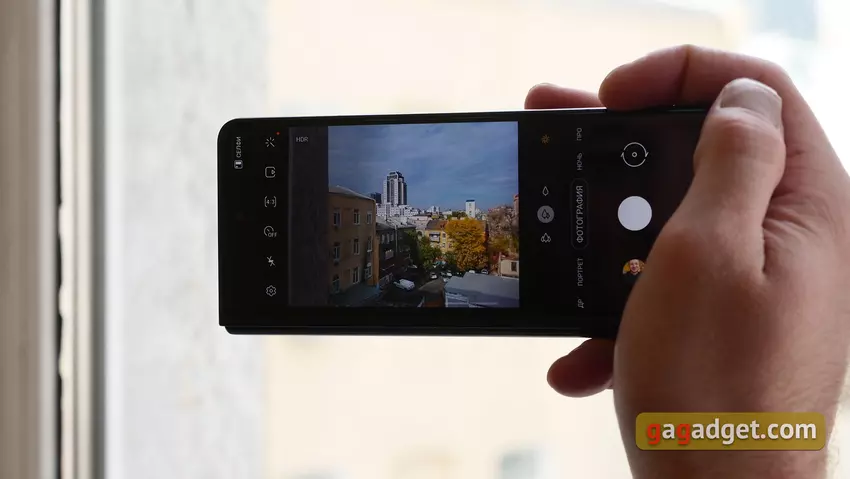 Die Kamera-App sieht vertraut aus: Modi werden durch horizontales Scrollen umgeschaltet, zusätzliche Modi sind im Punkt "Mehr" versteckt, sie können in die Hauptliste gezogen werden, und die Reihenfolge der Modi kann nach Belieben angepasst werden. Alle grundlegenden Einstellungen wie Blitz, Filter, Seitenverhältnis und Zoom befinden sich auf dem Hauptbildschirm. Der Zoom kann entweder stufenlos oder mit festen Einstellungen angepasst werden. Der Multikameramodus mit gleichzeitigen Aufnahmen mit verschiedenen Kameras in unterschiedlichen Modi ist ebenfalls vorhanden.