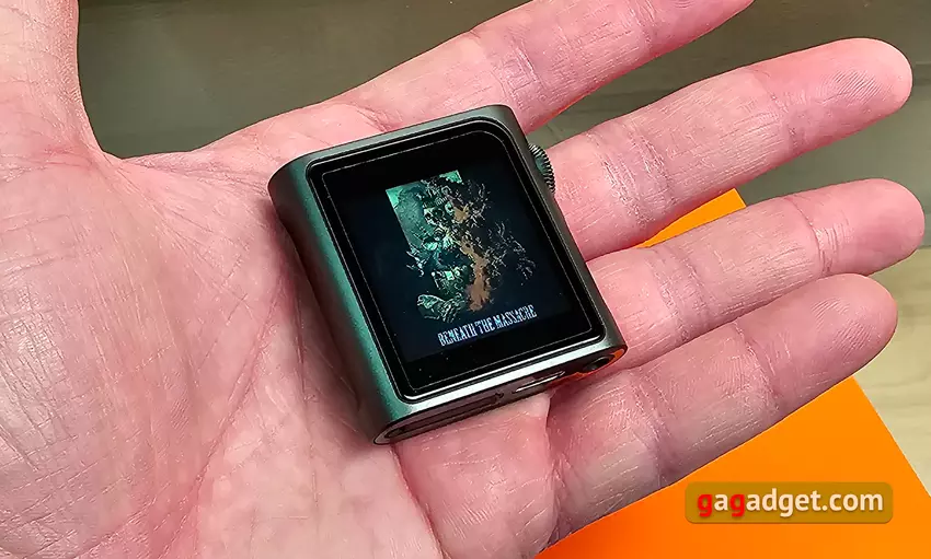 Die Vorderseite hat ein schwarzes Schutzglas mit abgerundeten Kanten und ein 1,54-Zoll-Touchscreen-Display mit einer Auflösung von 240x240. Es ist zwar klein, reicht aber aus, um die wichtigsten Funktionen des Players zu steuern.