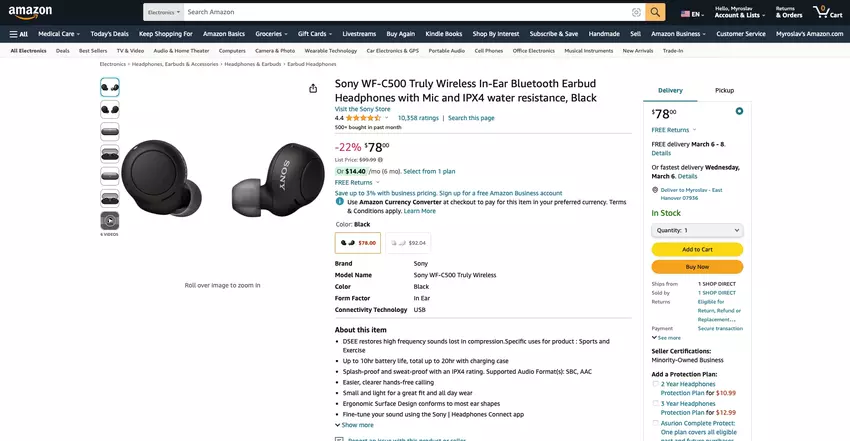 Amazons Angebot des Tages: Sony WF-C500 mit IPX4-Schutz und Google Fast Pair für $78 (22% Rabatt)