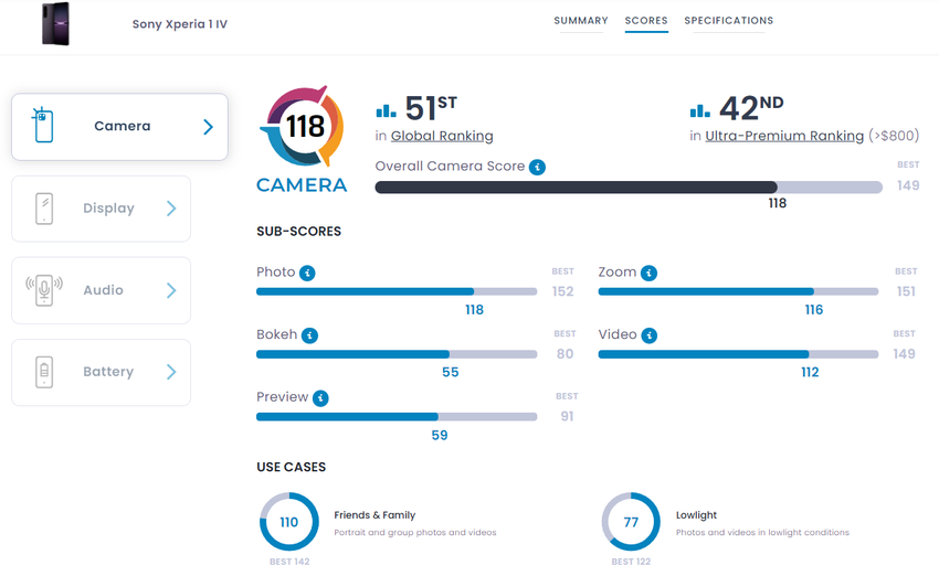 Sony Xperia 1 IV scheitert im DxOMark-Kameratest und fällt sogar hinter das iPhone 13 mini zurück: Das 1599 Dollar teure Smartphone landet auf Platz 51