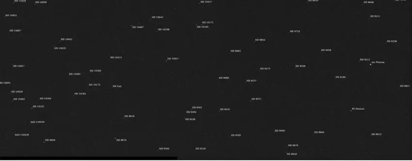 Psyche ist mit zwei Multispektralkameras ausgestattet, um Mineralien und Metalle auf dem Asteroiden zu identifizieren. Die 68 Bilder wurden aufgenommen, um die Leistung der Instrumente der interplanetaren Station zu kalibrieren und zu überprüfen. Unten sehen Sie das Sternenfeld im Sternbild der Fische.