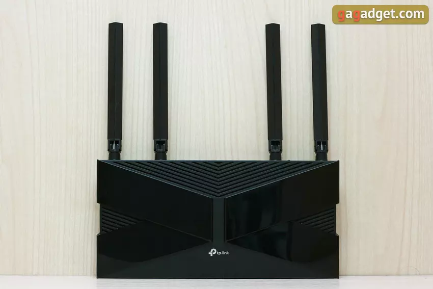 Archer AX23 sieht konservativ und streng aus, im Stil anderer Geräte dieser Linie, ohne Anspruch auf Originalität. Ein rechteckiger Kasten mit vier Antennen, sehr ähnlich dem uns bekannten Archer AX10.