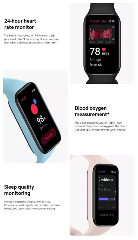 Bei den technischen Daten gibt es keine Änderungen: Der Fitness-Tracker erhält ein 1,47-Zoll-Display, 5-ATM-Wasserfestigkeit, Unterstützung für mehr als 30 Sportmodi, Sensoren für Herzfrequenz, Blutsauerstoffgehalt und Schlafüberwachung sowie eine Akkulaufzeit von bis zu 14 Tagen.