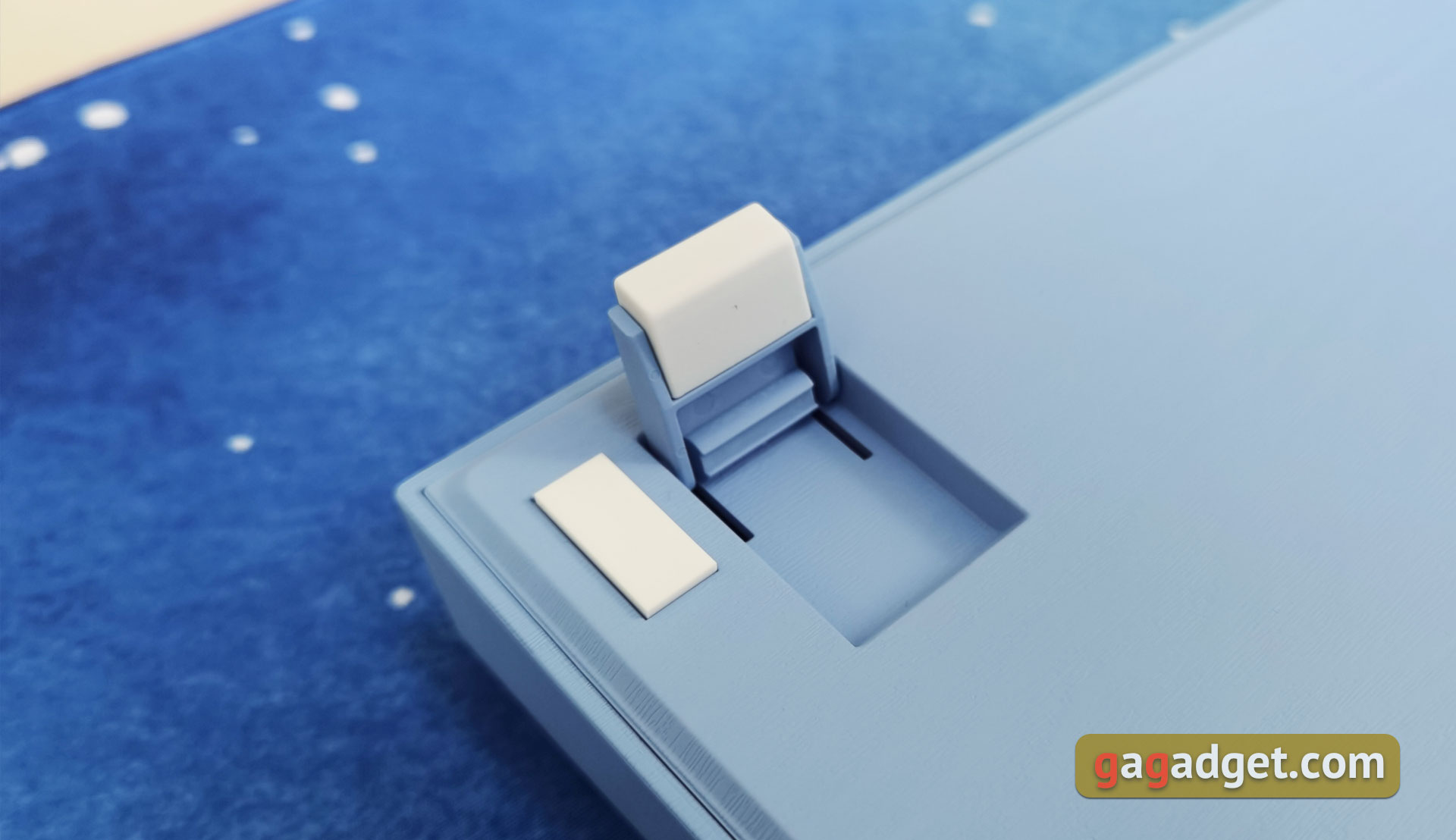 Die Tastatur hat keine weiteren Zusatzfunktionen. Daher ist es nicht erforderlich, eine zusätzliche Anwendung zu installieren. Einfach an einen USB-Anschluss anschließen und verwenden. Zusammen mit der Tastatur erhielten wir die Varmilo Sea Melody Desk Mat XL Oberfläche, die das gleiche Design wie die Tastatur hat. Die blau-weiße Farbgebung und das Bild eines Wals. XL ist die größte Variante und nimmt den meisten Platz aller Standard-Bürotische ein. Seine Abmessungen sind 900x400mm und 3mm dick. Es gibt auch kleinere Versionen.