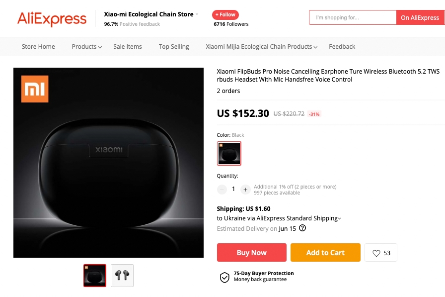 So kann jeder das Flaggschiff TWS-Kopfhörer von Xiaomi bestellen. Für ein neues Produkt werden sie 152$ + Versand verlangen. Zum Vergleich: Der offizielle Preis des Geräts in China beträgt $124.